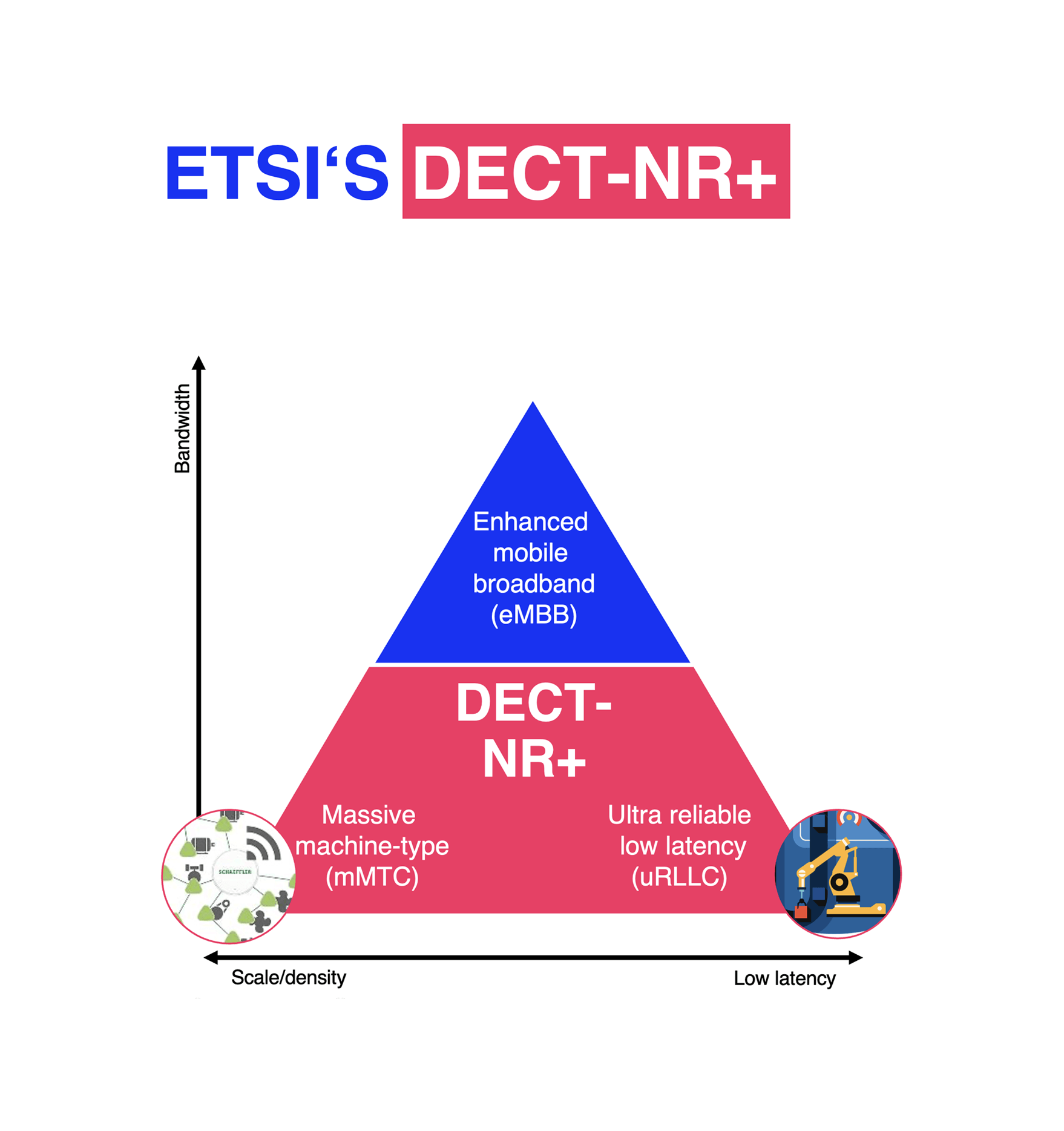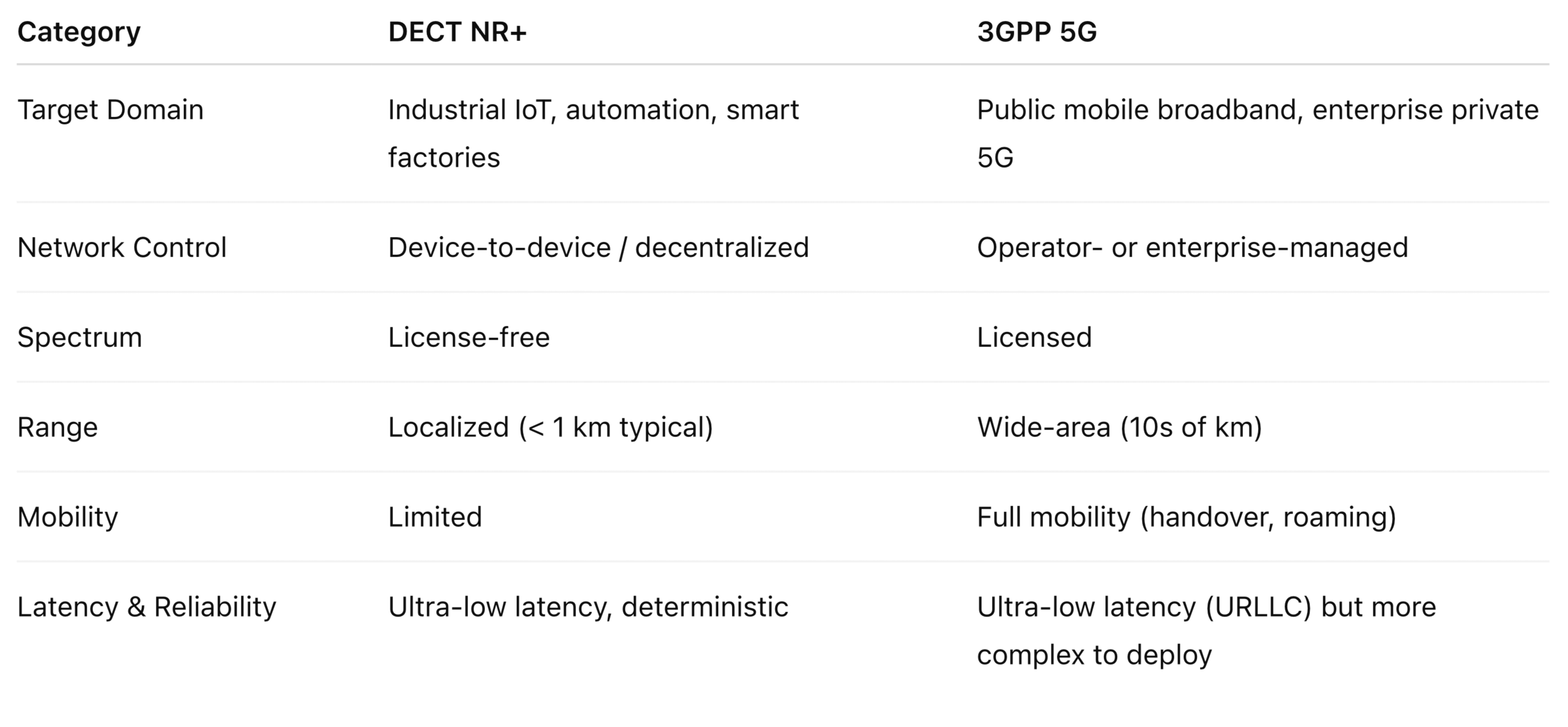 While 3GPP’s 5G is primarily the evolutionary successor to 4G mobile technology—designed mainly for cellular communications—DECT NR+ was developed specifically for industrial and IoT applications.